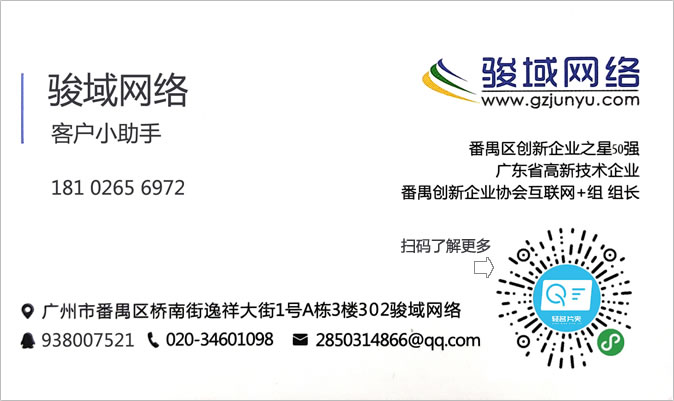 廣州駿域網(wǎng)絡(luò)科技有限公司成立于2005年,是一支由眾多具有多年實(shí)踐經(jīng)驗(yàn)的專業(yè)人士組成的高新技術(shù)團(tuán)隊(duì),專為企業(yè)提供網(wǎng)站建設(shè)、全網(wǎng)營銷、郵箱等服務(wù),我們擁有嚴(yán)謹(jǐn)?shù)某绦蜷_發(fā)人員、專業(yè)的美工設(shè)計(jì)、隨時(shí)為您效勞的售后服務(wù)人員,團(tuán)隊(duì)人數(shù)達(dá)一百多人。目前我們已經(jīng)榮幸的為廣州眾多知名企業(yè)提供了包括網(wǎng)站建設(shè)、手機(jī)網(wǎng)站、小程序、企業(yè)軟件開發(fā)等多種基于互聯(lián)網(wǎng)技術(shù)的服務(wù)。 通過長期積累,駿域網(wǎng)絡(luò)目前已經(jīng)擁有50000多家客戶。